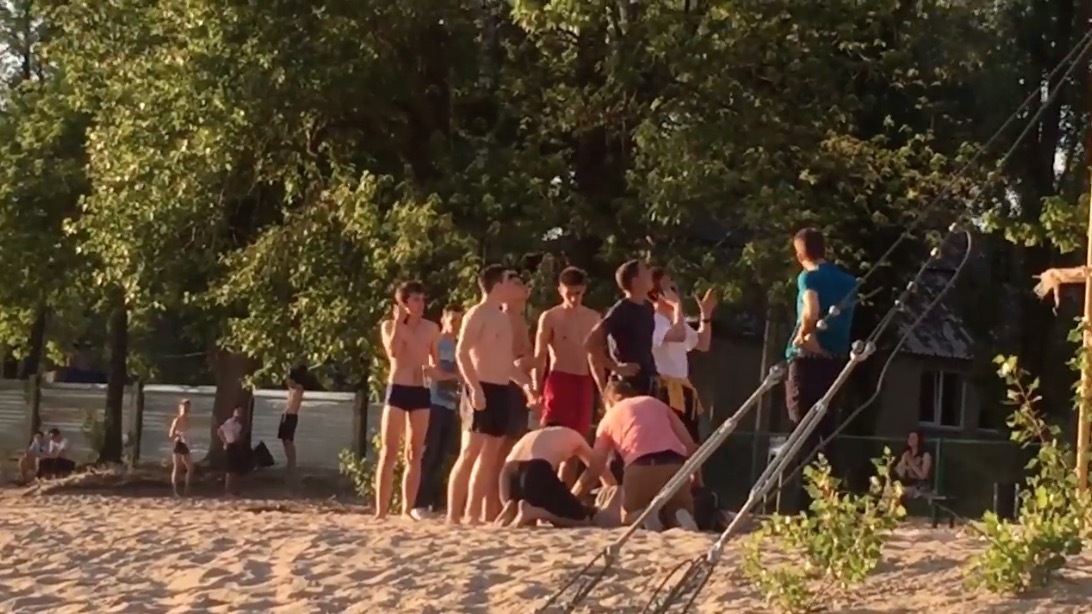 На одном из опубликованных видео видно, как на песке лежит парень, вокруг него собралась толпа. Отметим, что сам момент падения на записи не зафиксирован.