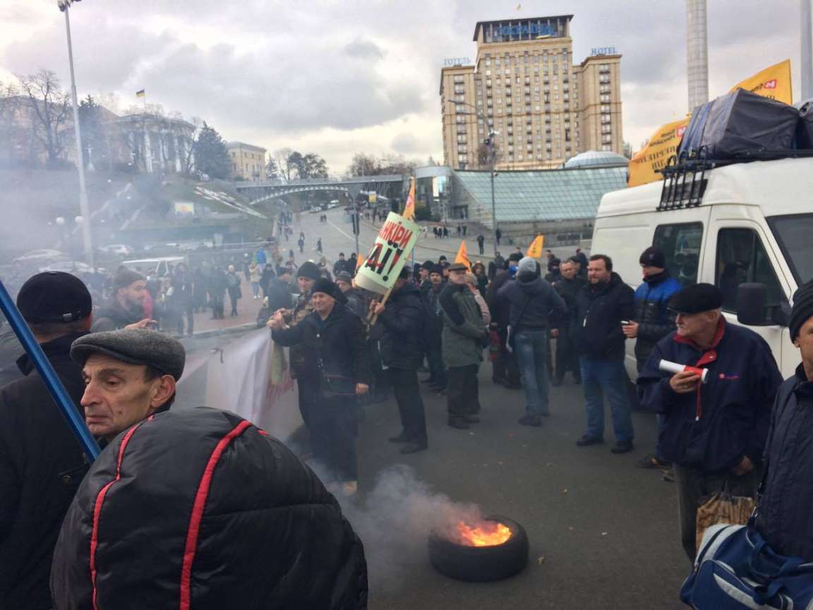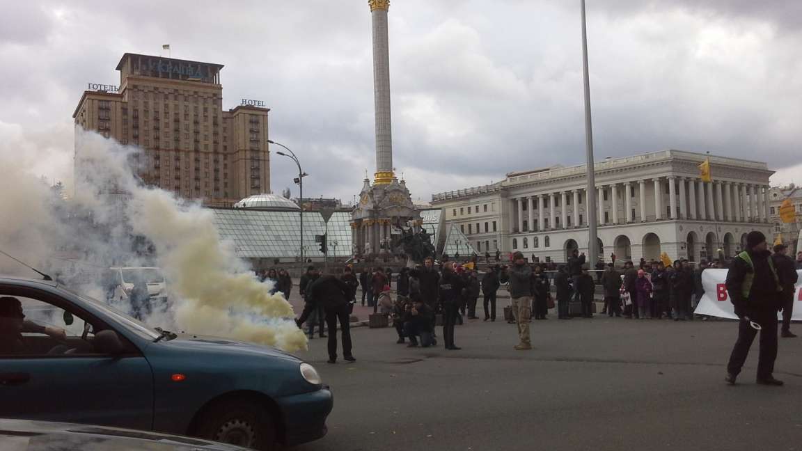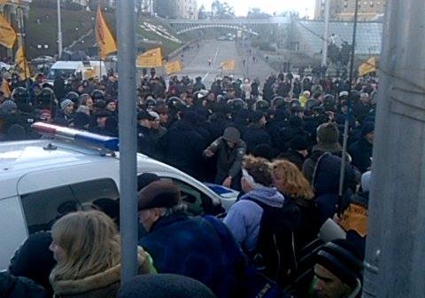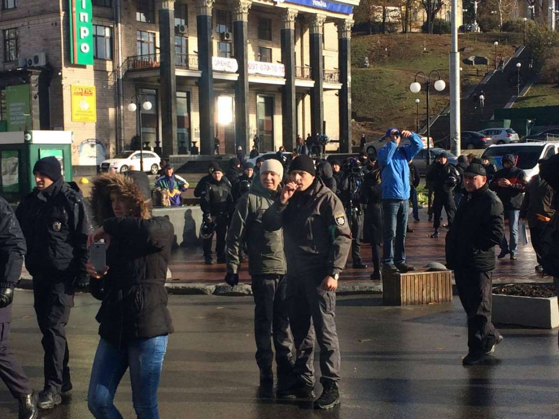 «На митинге началась толкотня правоохранителей с митингующими. Правоохранители начали поджимать митингующих, перекрывших движение на Крещатике. Митингующие не хотят идти, продолжается потасовка. Несколько людей лежат на асфальте и пытаются противостоять. Некоторые люди еще перекрывают движение. О пострадавших информация еще не поступает. Видим, что задержали одного человека, полиция пытается посадить ее в машину, люди этого не дают», — сообщил телеканал 112 Украина.