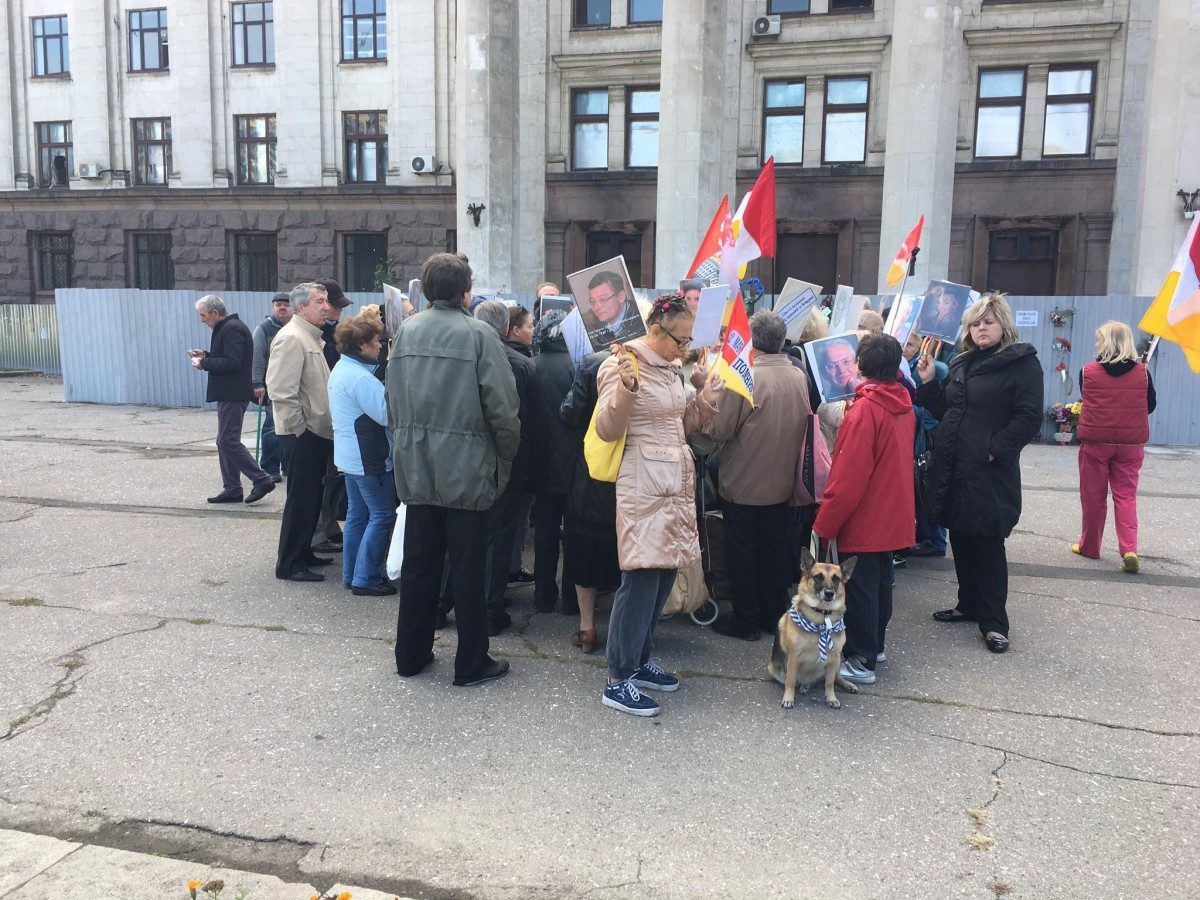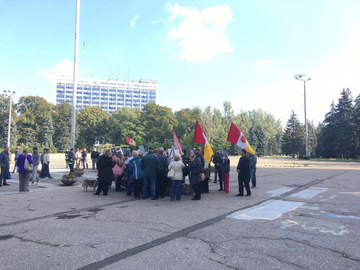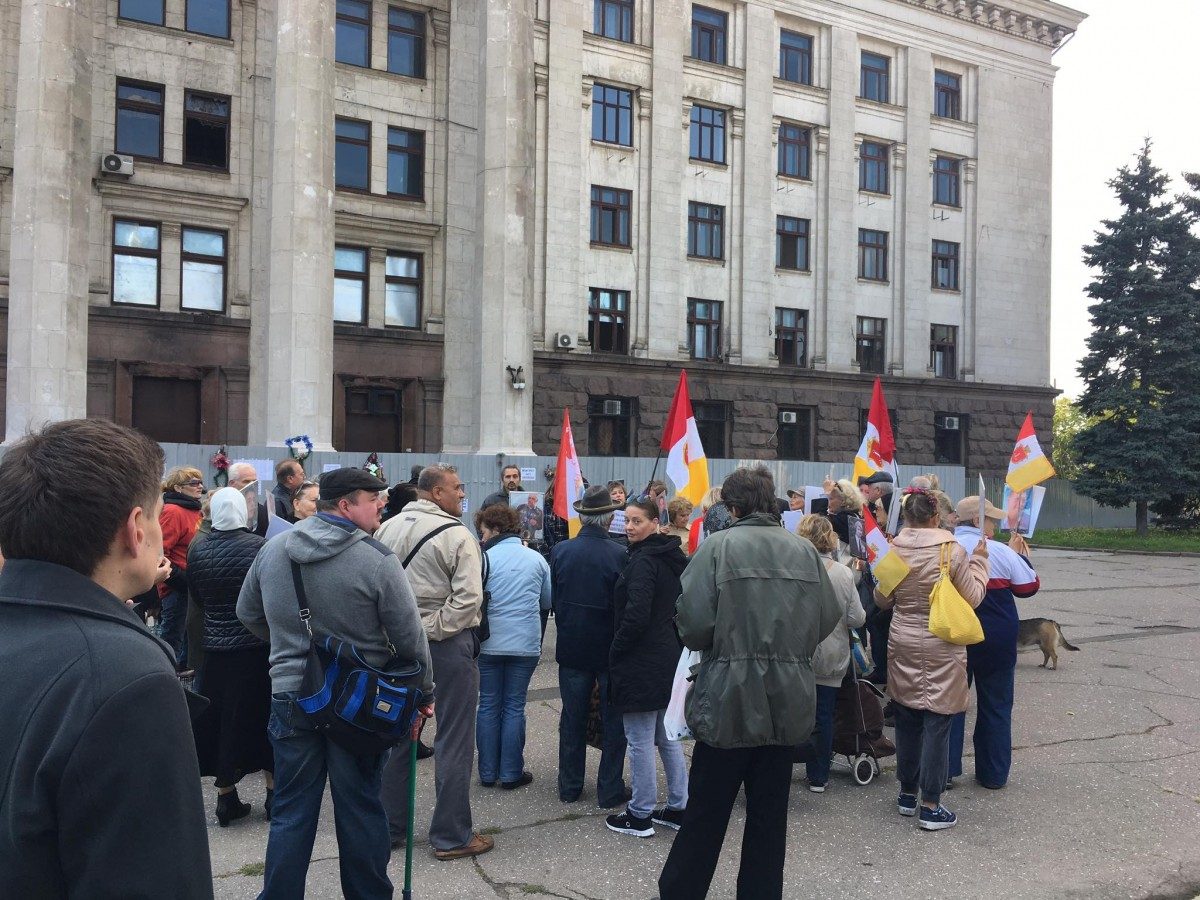 На площади собралось несколько десятков пророссийски настроенных пенсионеров, которые заявили о цели почтить память погибших в столкновениях 2 мая 2014 года.