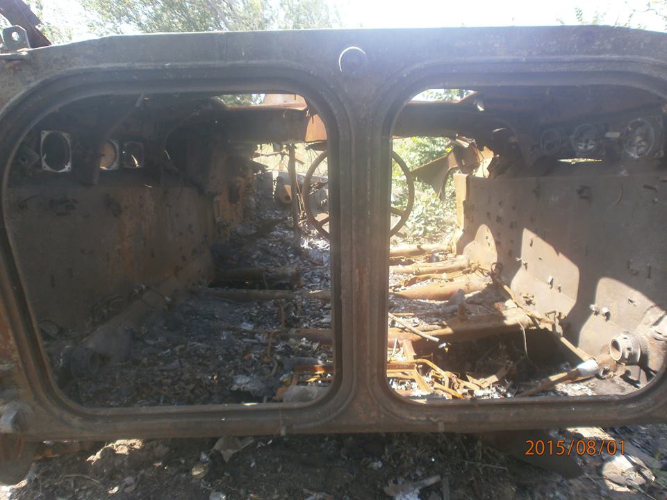 Волонтеры миссии «Черный тюльпан» нашли на подконтрольной террористами территории в Луганской области сгоревший БМП с останками бойцов.