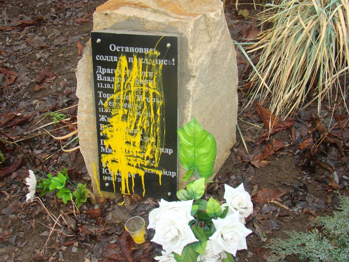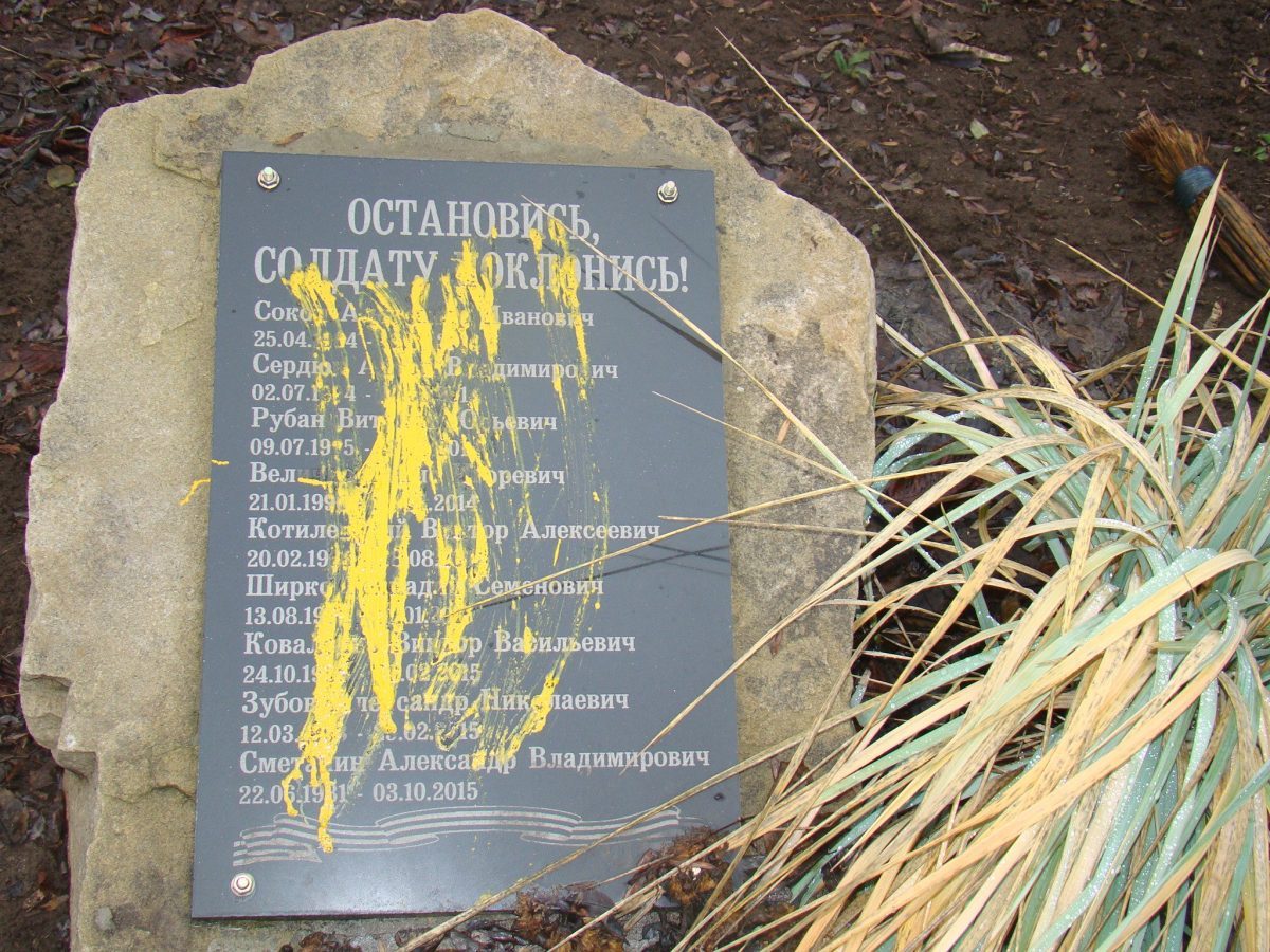 По информации одного из местных изданий, «неизвестные разрисовали краской и бездушно расписали оскорбительными надписями практически все элементы мемориального комплекса».