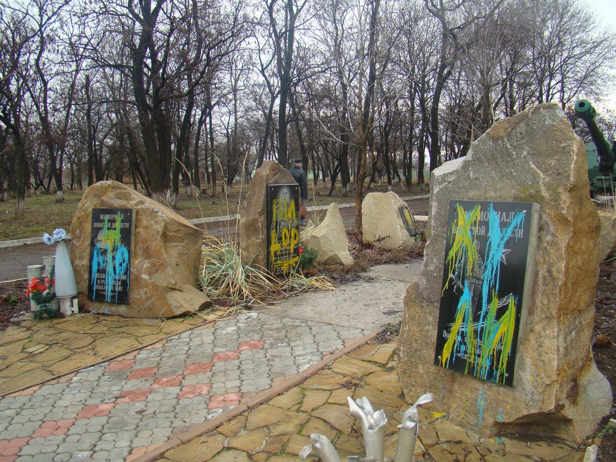 На Луганщине нецензурно расписали мемориал коллаборационистов -«героев ЛНР»