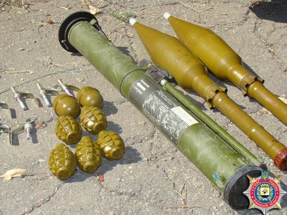 Сотрудники правоохранительных органов изъяли противотанковый гранатомет, 3 ракеты к гранатомету, 7 боевых гранат с запалами и более 400 патронов, которые были спрятан в заброшенном, сгоревшем доме в Марьинке Донецкой области.