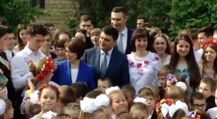 Вместе с мэром Киева Виталием Кличко Владимир Гройсман посетил церемонию «Последнего звонка» в школе №63 на Сырце.