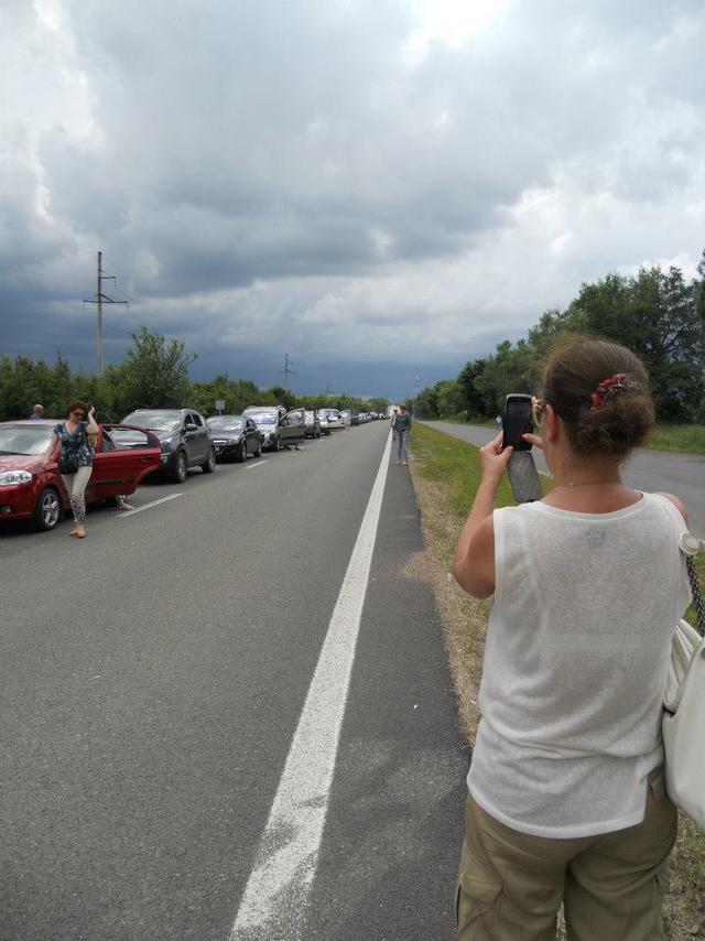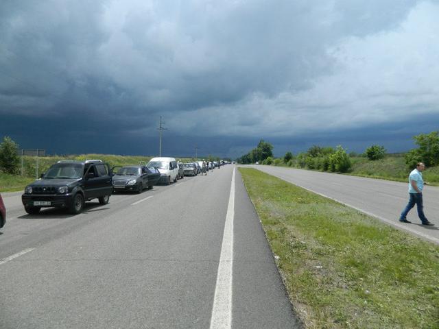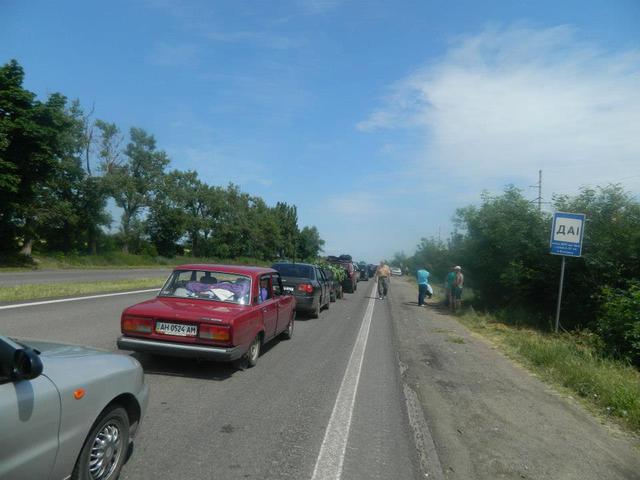 «Очередь на Волновахе растет. Сообщают, что сегодня хвост из Донецка начинается в Бугасе, а хвост в Донецк — от знака «Волноваха» на въезде в город со стороны Мариуполя», — прокомментировал он опубликованныефотографии.