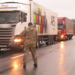 Некоторые фуры разворачиваются и едут в обратном направлении, другие просто останавливаются и ждут, что будет дальше. Акция проходит вежливо и спокойно, за ней наблюдают стражи порядка.