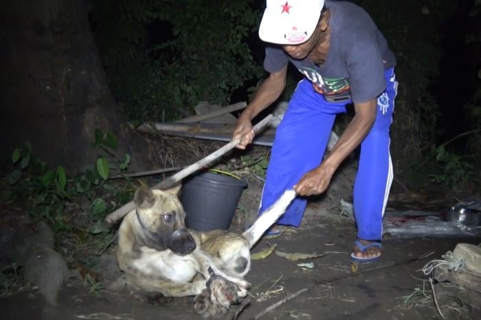 Более четырех месяцев тайный агент «Животных Австралии» находился на Бали, внедряясь в систему торговли собачьим мясом. Ему удалось узнать шокирующие подробности того, как собачье мясо попадает на прилавки: как правило, собак застреливают прямо на улице либо сажают в мешки, завязывают их и забивают животных до смерти.