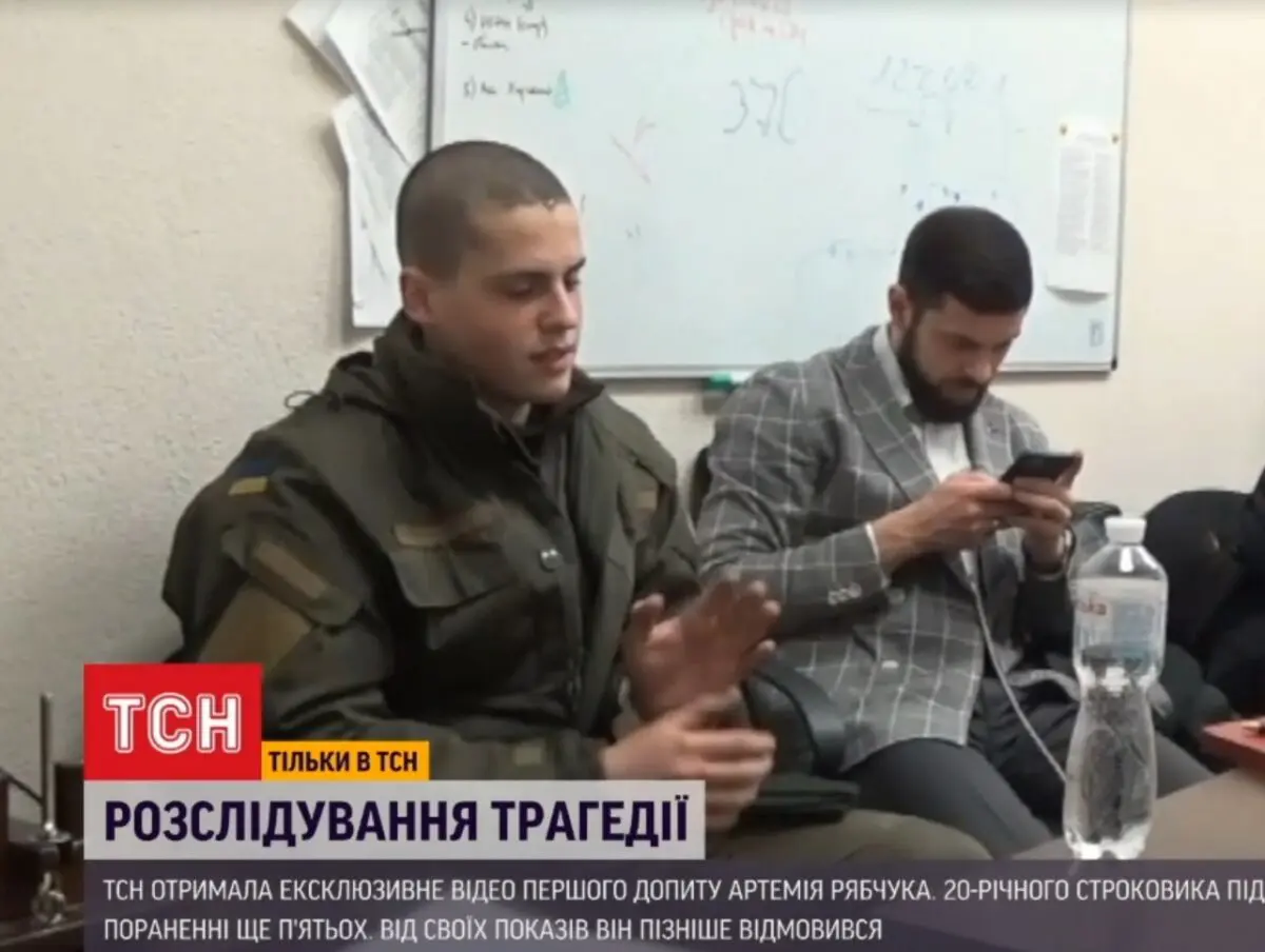 Журналисты опубликовали кадры первого допроса Рябчука после его задержания. На данный момент подозреваемый уже отказался от данных показаний.