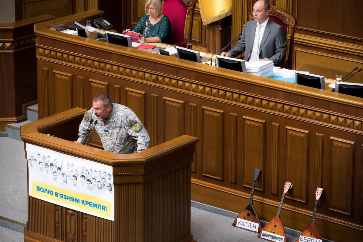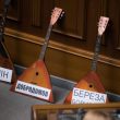 В четверг, 8 сентября, народные депутаты от фракции «Народный фронт» внесли в сессионный зал Верховной Рады и оставили под президиумом три балалайки, к которым прикреплены таблички с фамилиями трех парламентариев – Борислава Березы, Дмитрия Добродомова и Сергея Каплина. Этих нардепов НФ обвиняет в антиукраинской деятельности в интересах России.
