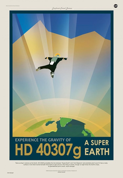Постеры призывают приобретать туры на экзопланеты — планеты, вращающиеся вокруг отличных от Солнца звезд. Стиль плакатов выдержан в духе постеров 1930-х гг., рекламировавших поездки в Австралию, Палестину, Советский Союз, а также Национальную компанию железнодорожных пассажирских сообщений «Американ Трэкс».