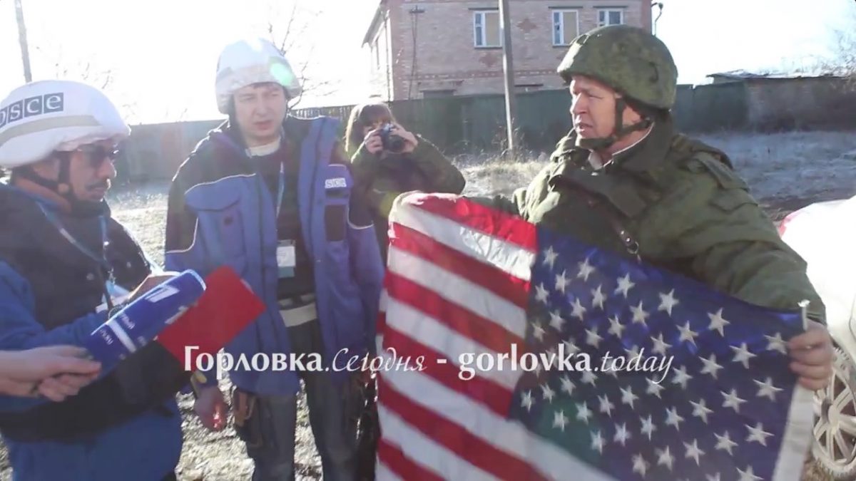 Российские боевики опубликовали видео, на котором один из них говорит наблюдателям ОБСЕ о ночной атаке наемников со всего мира на «непоколебимых русских» возле Горловки.