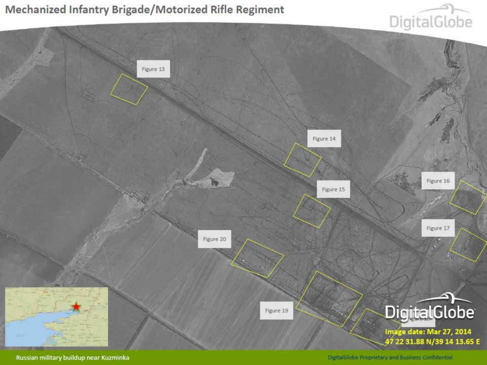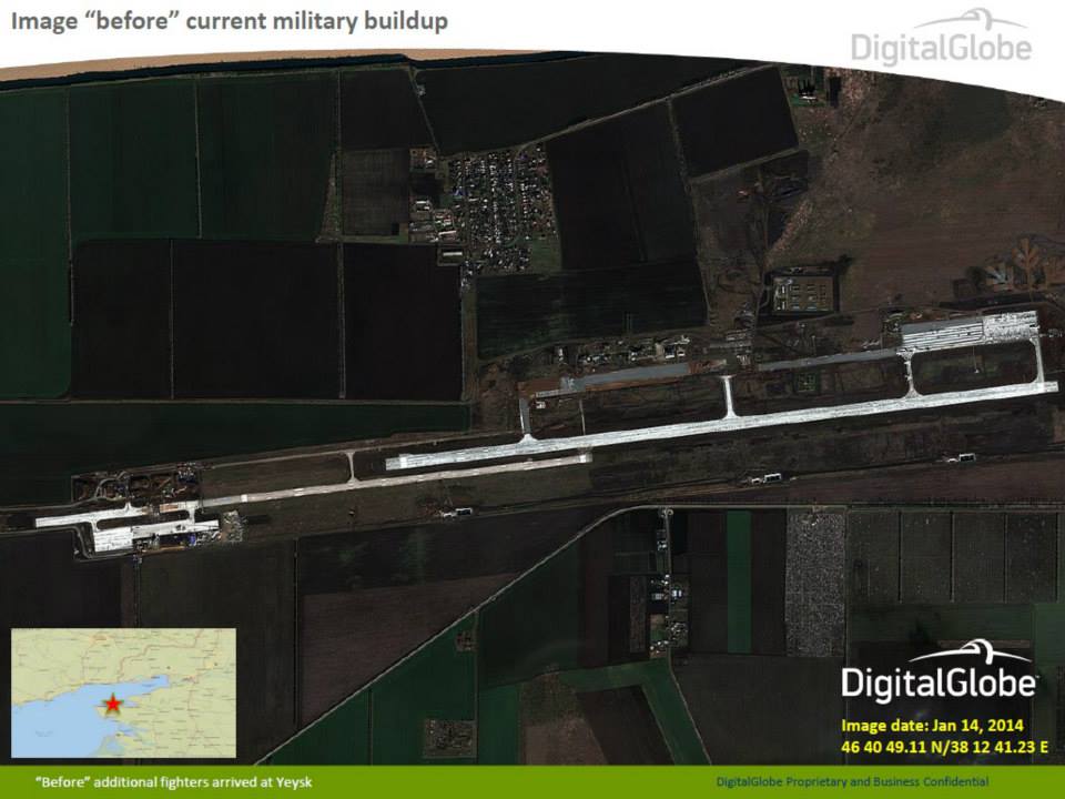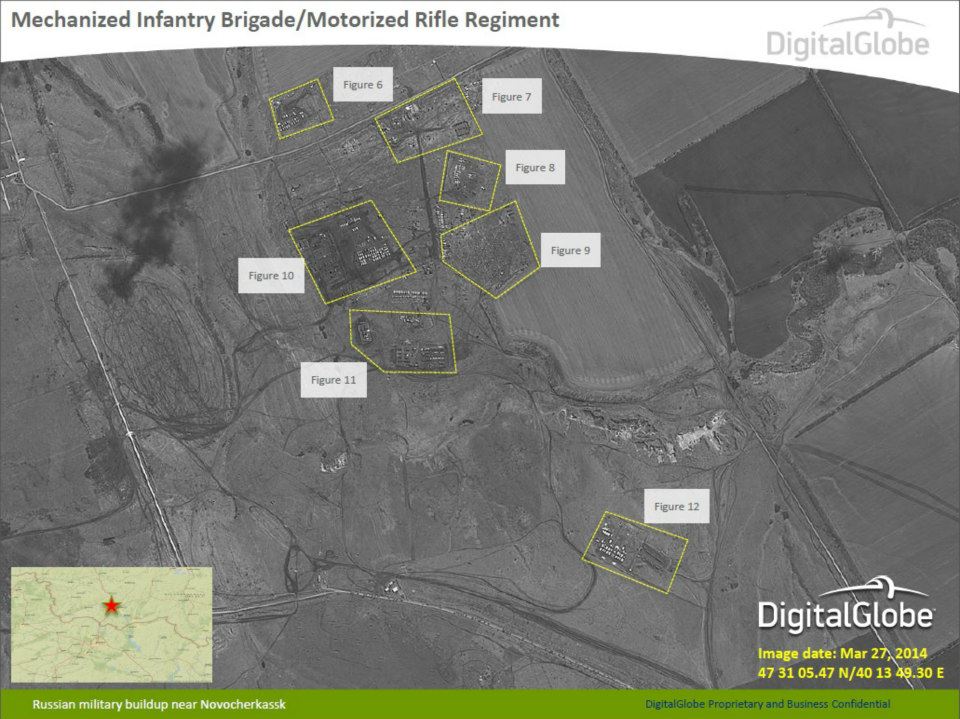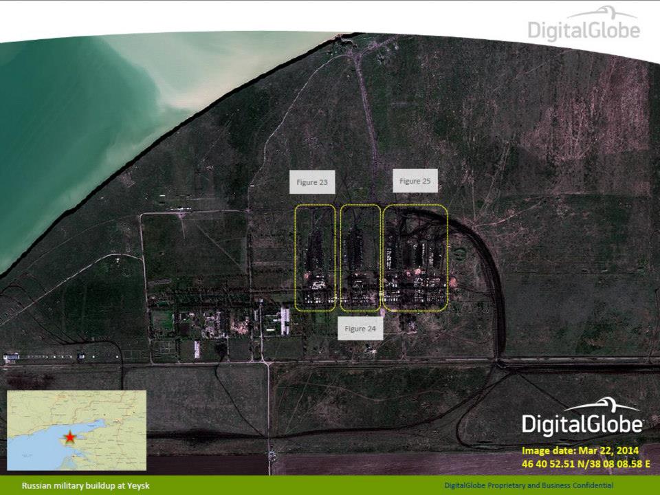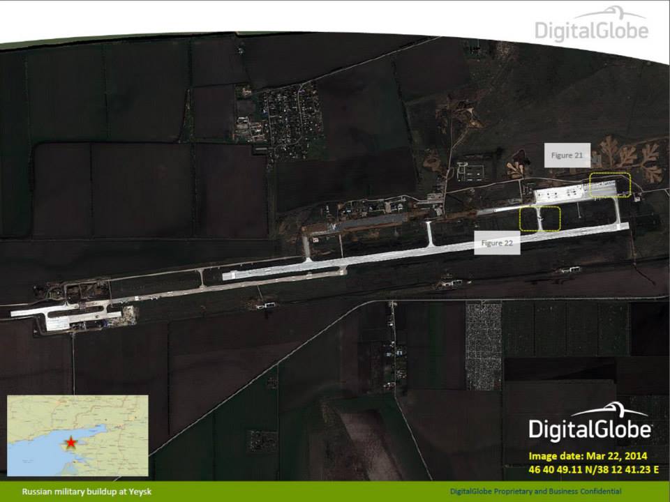 «Это существенное количество военных, которые находятся в боевой готовности. Они в состоянии действовать очень быстро», — заявил британский бригадный генерал Гарри Дикин, директор Центра по кризисных операций и управлению из штаб-квартиры НАТО в бельгийском городе Монс. По его словам, на базах находятся танки, вертолеты и самолеты, а также специальные военные подразделения. В частности, на одной из фотографий видно 21 вертолет на аэродроме вблизи Белгорода, на других — 40 танков и около 100 единиц другой военной техники.