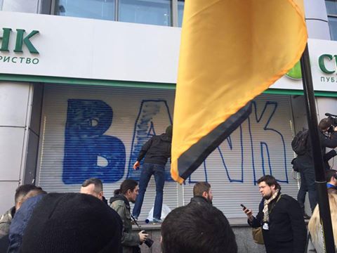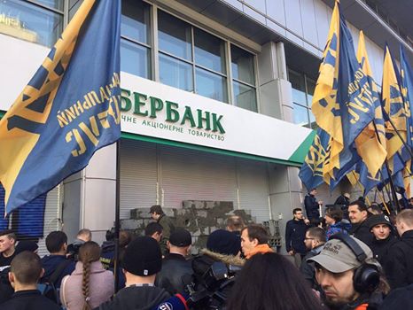 «Это центральный офис «Сбербанка» России, мы его тотально блокируем, мы закладываем кирпичом входы, и с этого дня он не будет работать. Постоянно мы будем расширять всю эту историю на всю Украину, на все их отделения», — сказал народный депутат, лидер новосозданной партии «Национальный корпус» Андрей Билецкий журналистам.