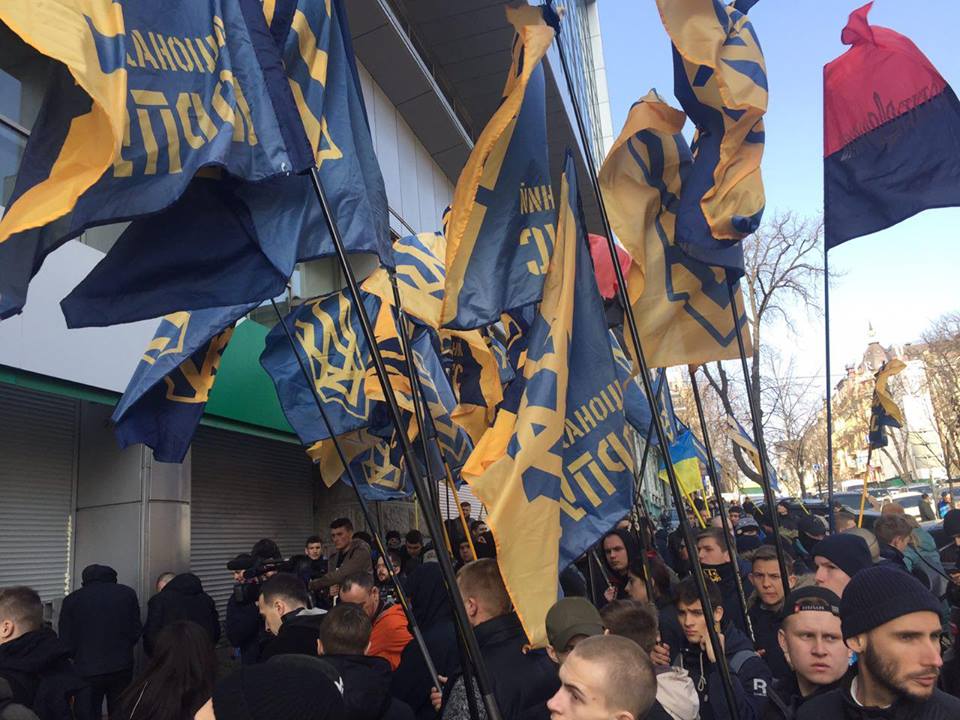 Националисты замуровывают главный офис «Сбербанка России» в Киеве