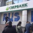В свою очередь в пресс-службе дочернего банка «Сбербанка России» в Украине сообщили, что в целях безопасности работа отделения временно приостановлена.