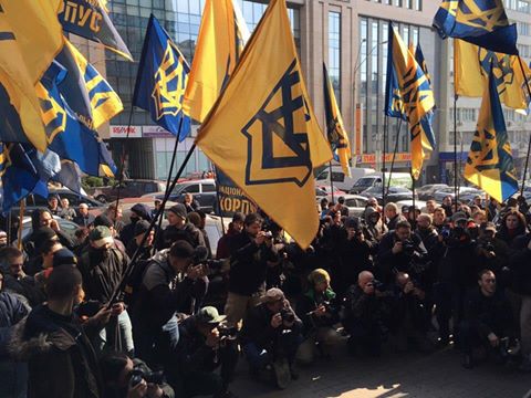 «Под» Сбербанком «Национальный корпус сводит бетонные стены», — говорится в сообщении.