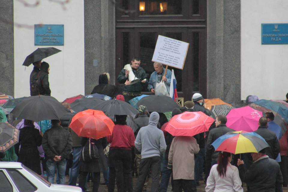 Луганск. Пророссийские митингующие отправились от СБУ в ОГА. «Они требуют проведения внеочередной сессии относительно референдума. Убеждены, что сегодня станет ясно, чью сторону поддержит власти области» — сообщают активисты с места происшествия.