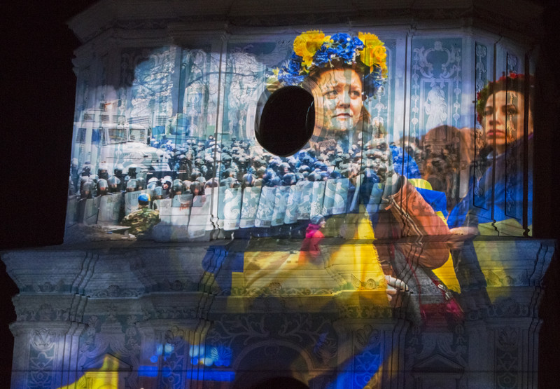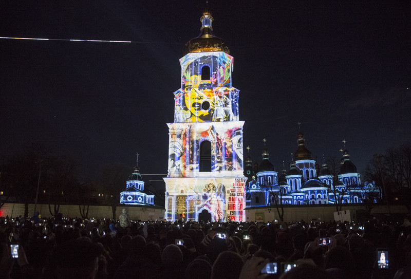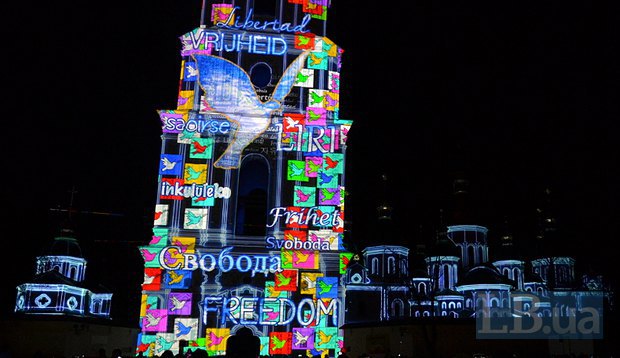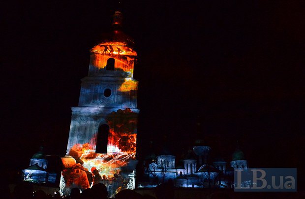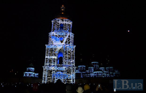 Как сообщает LB.ua, фасад Софии Киевской в этот вечер осветился событиями, которые прожила Украина в последний год — разгон Майдана, сотни погибших за свободу и идею. Осознание, что революция не безлика.