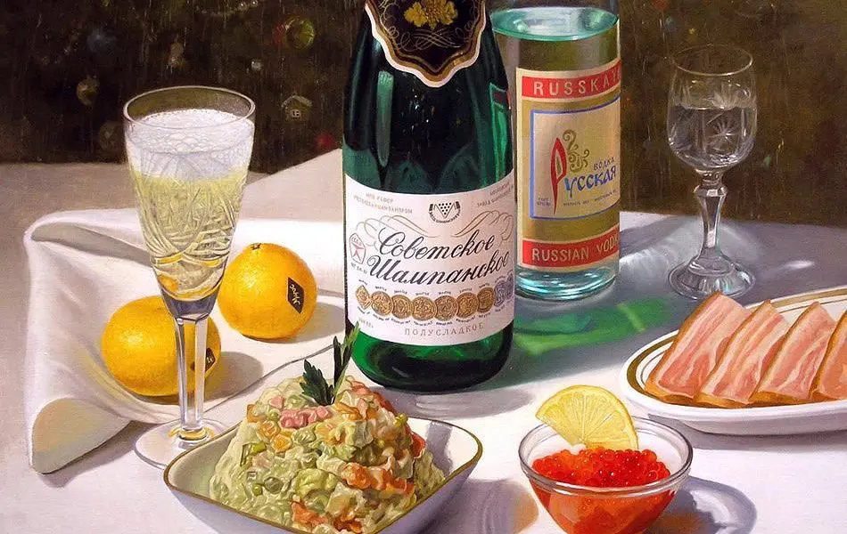 Кроме качества самой еды, совковый новогодний стол был к тому же попросту убогим и бедным — это сейчас хоть за два часа до Нового года вы можете пойти в магазин и купить всё что нужно — а в СССР к Новому году начинали готовиться чуть ли не с лета, накапливая на антресолях банки с зелёным горошком «Глобус» и бережно храня в холодильнике зелёную баночку с красной икрой.