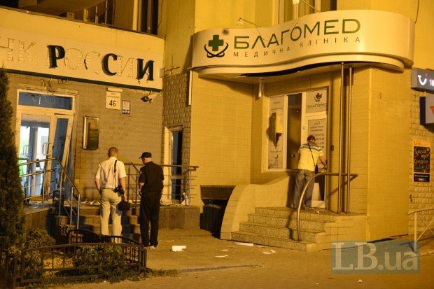 По данным милиции, взрывной волной повреждены входные двери банковского учреждения, а также окна и вывеска с названием банка.