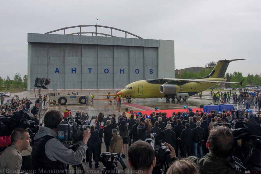 Как сообщали ранее, на государственном предприятии «Антонов» в Киеве 16 апреля торжественно представили новый самолет АН-178. На церемонии присутствовали несколько тысяч работников предприятия.