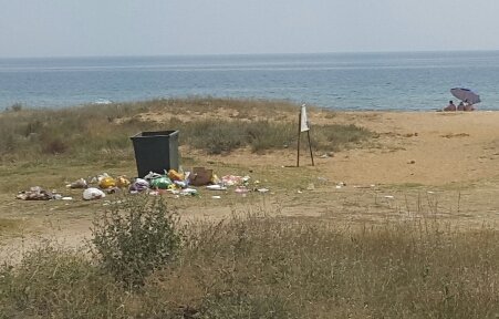 Российский турист приносит мусор к мусорному баку! Но положить мусор прямо в бак — ума ещё не хватает