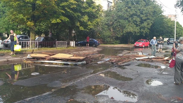 Так, в Лычаковском районе сильный ветер свалил 13 деревьев, два из них упали на автомобили. Также ветер сорвал балконный козырек с дома на улице Пасичной, козырек также упал на автомобиль. Поблизости памятника Тарасу Шевченко в центре города упавшее дерево попало сразу на два автомобиля. На проспекте Чорновола провалилось дорожное покрытие.