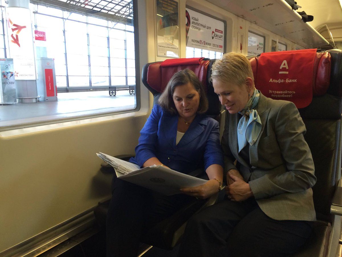 Об этом сообщил пресс-секретарь американского посольства в России Уилл Стивенс, опубликовав в аккаунте в Твиттере фотографию Нуланд на фоне аэроэкспресса.