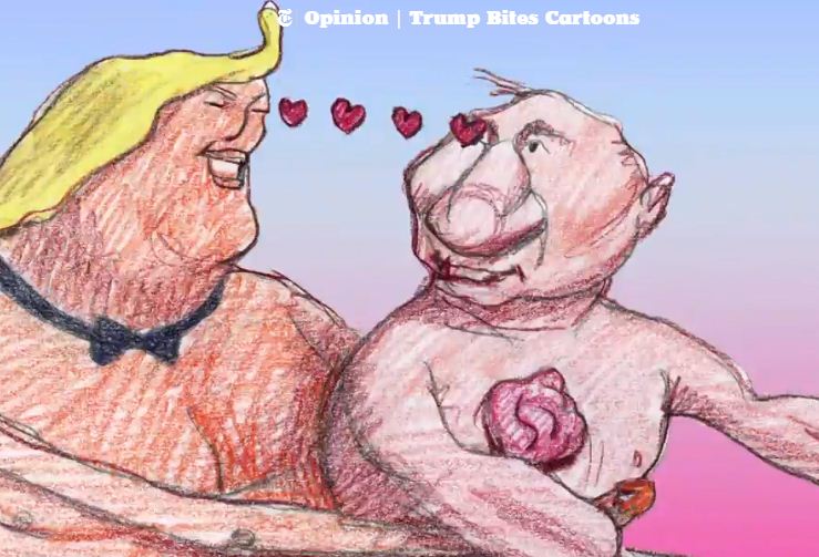 После неожиданно теплой встречи президентов США и России Дональда Трампа и Владимира Путина в Хельсинки (Финляндия) одно из самых популярных американских изданий The New York Times обнародовало на своей странице карикатурное видео «Трамп и Путин: история любви» об отношениях между главами государств.