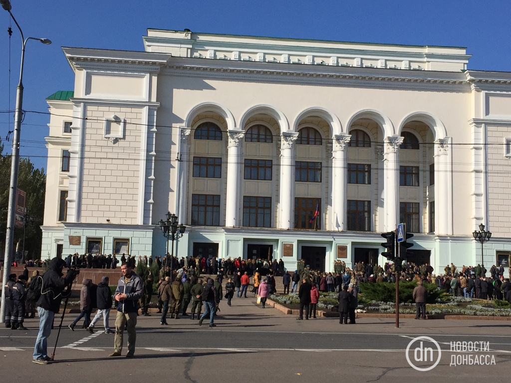 У здания театра оперы и балета им. А. Соловьяненко, скопилась очередь примерно из 3 тысяч человек. В очереди стоят преимущественно люди пожилого возраста и молодежь.  Из-за столпотворения территория вокруг театра оцеплена боевиками «ДНР». Движение по улице Артема перекрыто.