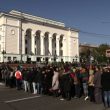 Очередь из желающих проститься с боевиком растянулась от театра к гостинице «Донбасс палас».