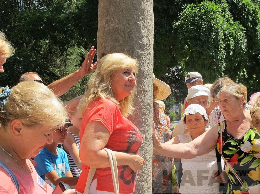После открытия менигира немногочисленные зрители мероприятия (преимущественно пенсионного возраста) поспешили зарядиться энергией от «места силы».