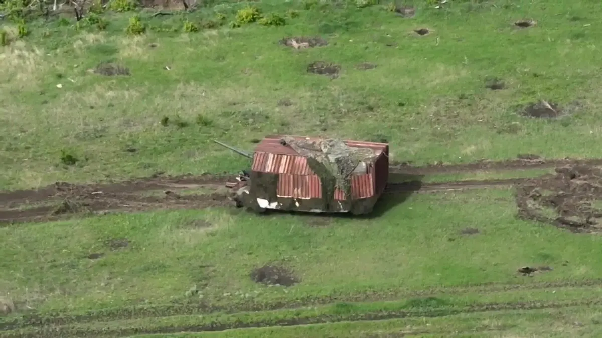 Но боевое применение танка-сарая, который был замечен, когда двигался по оккупированному Донецку, оказалось довольно коротким. Его зафиксировали явно брошенным после поражения, возможно, он также взорвался на мине.