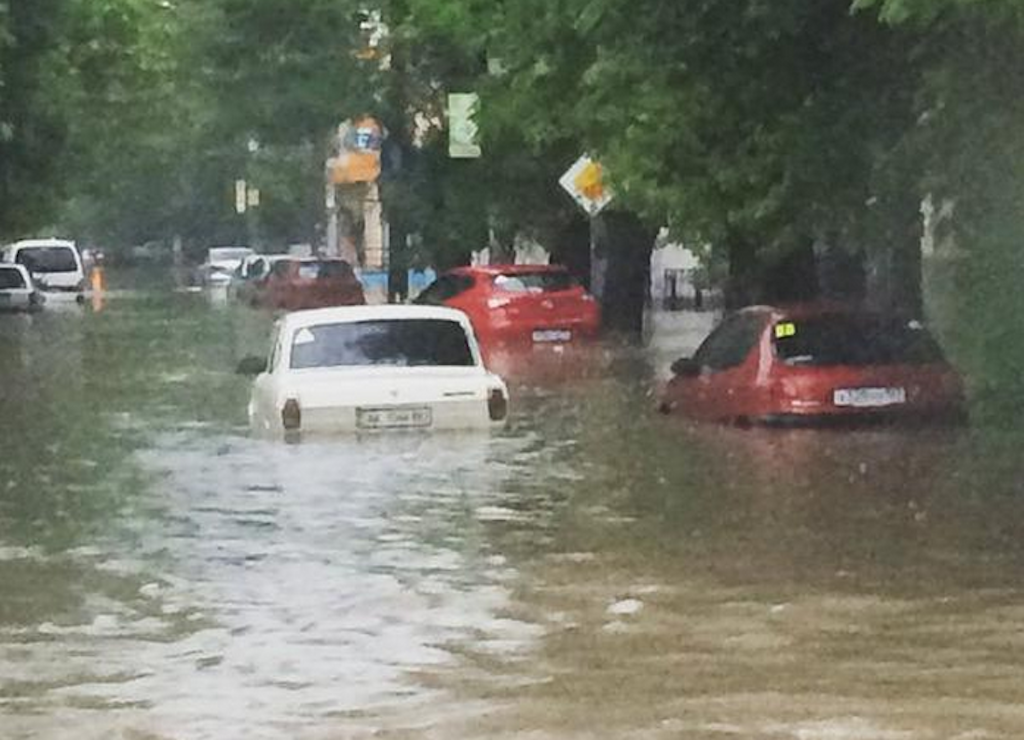 Буквально за полчаса сильного ливня улицы и дороги в некоторых районах города оказались залиты полностью. Из-за неработающих стоков уровень воды поднимается до полуметра и выше.