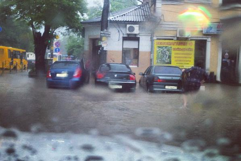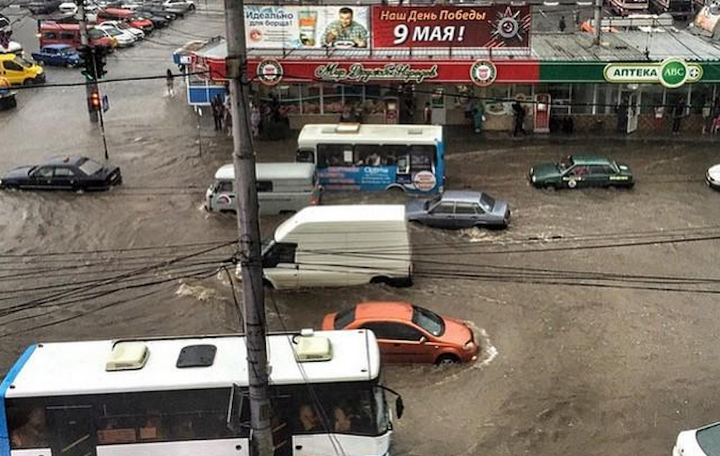 Дождь, который прошел сегодня в Симферополем, превратил оккупированную крымскую столицу в некое подобие Венеции.