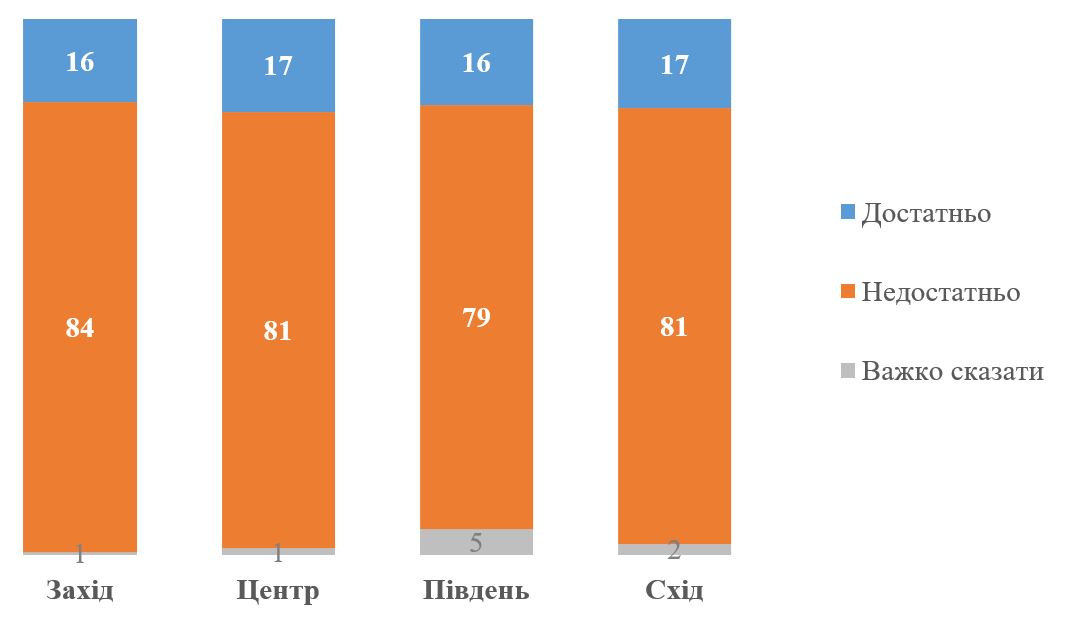 Согласно результатам опроса, 37% граждан считают, что Украина скорее приложила недостаточные усилия, хотя кое-что все-таки сделала, а остальные 44% считают, что усилия Украины по подготовке были абсолютно недостаточными.