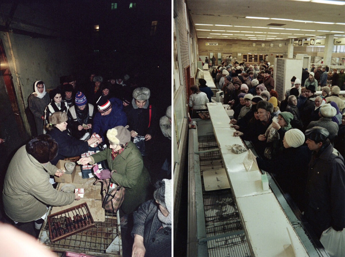В отделениях сберкассы выстраивались очереди — многие снимали вклады, так как предчувствовали скорый конец СССР. Многие любят повторять, что советские деньги «обесценились», а вклады «сгорели». Это не совсем точное определение — просто совковые фантики наконец обрели свою реальную стоимость, а реальная совковая месячная зарплата обрела своё реальное денежное исчисление — порядка $10-15. Змеиные пропагандистские чары закончились — и карета превратилась в тыкву.