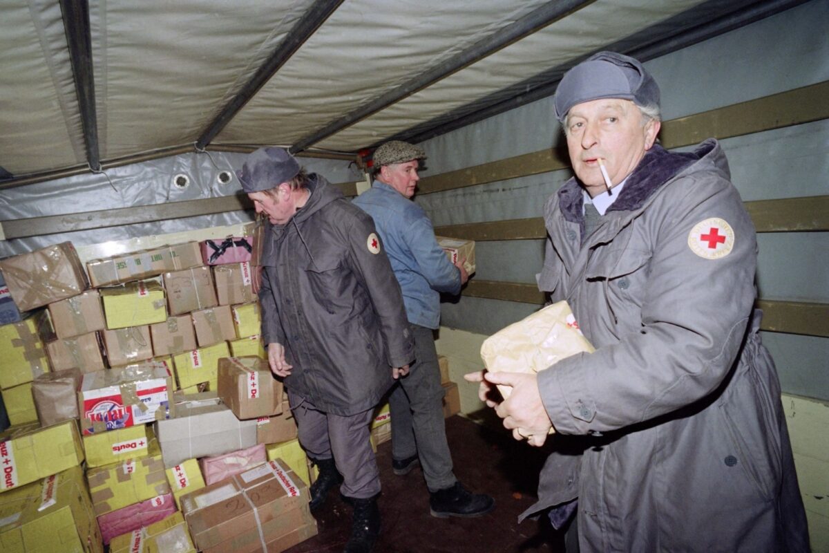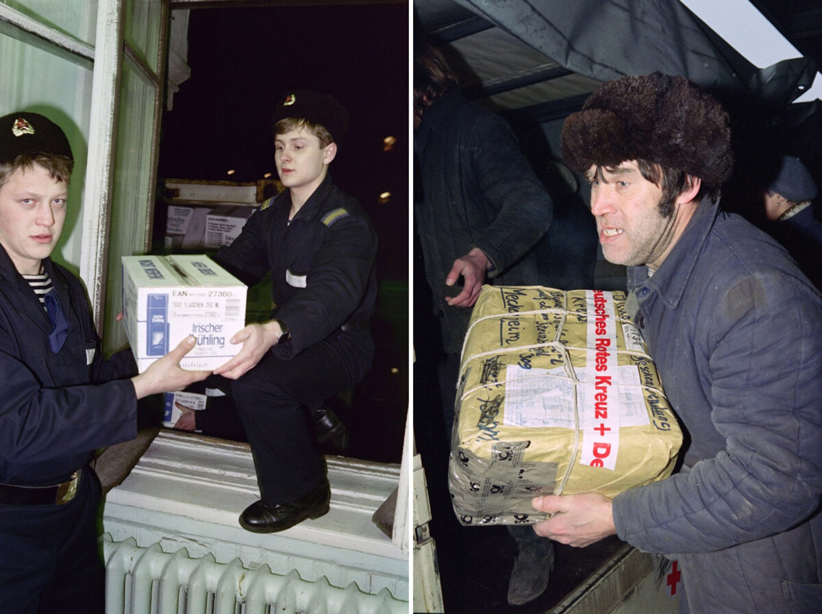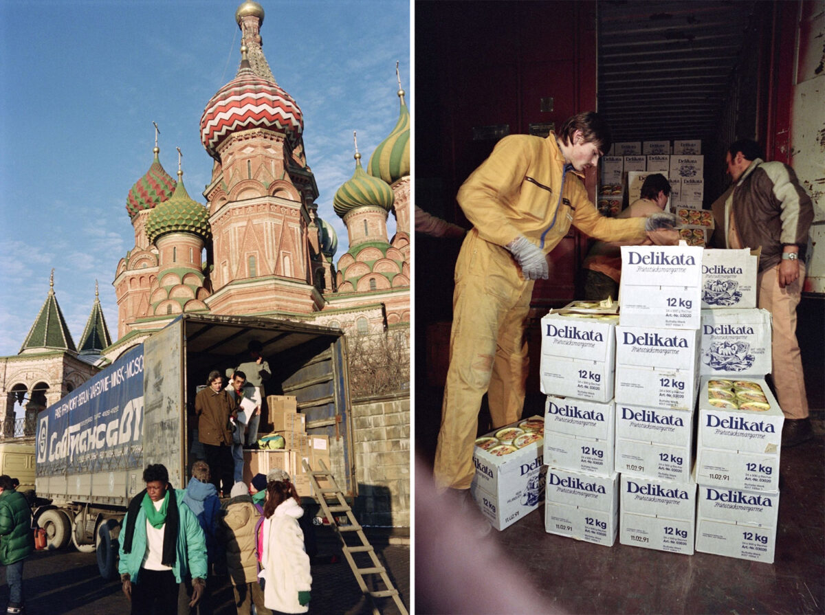 Продуктовая посылка для советских пенсионеров; её прислало не родное правительство, возглавляемое сталинскими безумцами вроде Пуго или Янаева — а ненавидимый Загнивающий Запад.