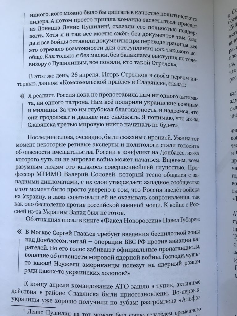 Если бы не российское вторжение, никакой войны на Донбассе не было бы, поскольку местное население не желало отделяться от Украины. Для полноценного восстания там не было ни человеческого ресурса, ни адекватных лидеров. Об этом в своей книге «85 дней Славянска» пишет российский боевик Александр Жучковский.