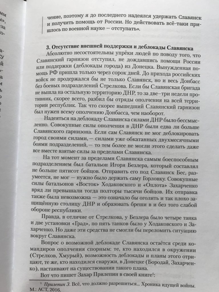 «Ополчение», по словам автора, было малочисленным и без ввода российских войск долго бы не продержалось.
