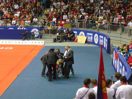 31 августа на закрытии чемпионата мира по дзюдо в Челябинске, охрана задержала и выдворила из зала девушку на инвалидной коляске и сопровождающего ее отца, попытавшихся лично передать пакет документов президенту, передает ura.ru.