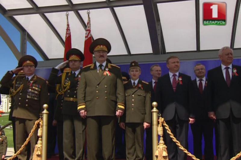 11-летний сын президента Беларуси Александра Лукашенко Николай пришел на парад Победы в Минске в форме маршала Вооруженных сил – верховного главнокомандующего белорусской армии. В параде тексте принимало участие доблесть Беларуси сельхоз техника и грузовые автомобили.