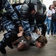 Вся Московия в одном снимке. Одного россиянина без формы вяжут пять россиян в форме. А три десятка овец стоят вокруг и снимают действо на телефоны: