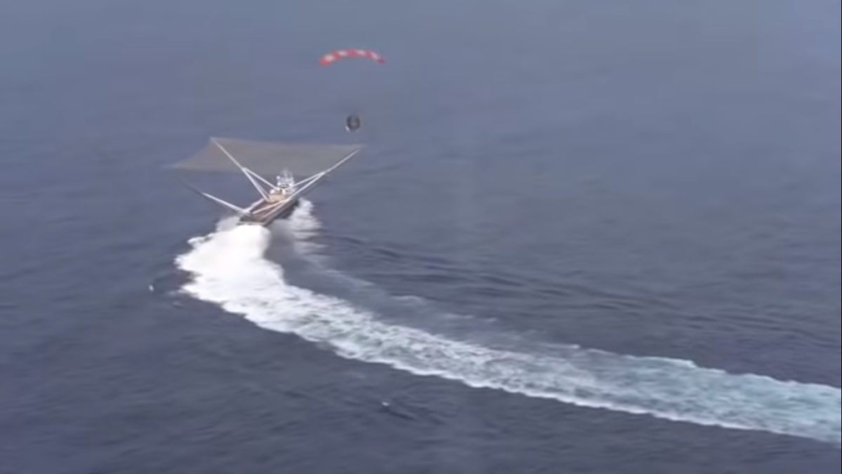 Сообщается, что парашют с грузом упал в нескольких метрах от сети. В компании Илона Маска хотят научиться вылавливать створки обтекателя вскоре после запуска ракет до того, как они приводнятся.