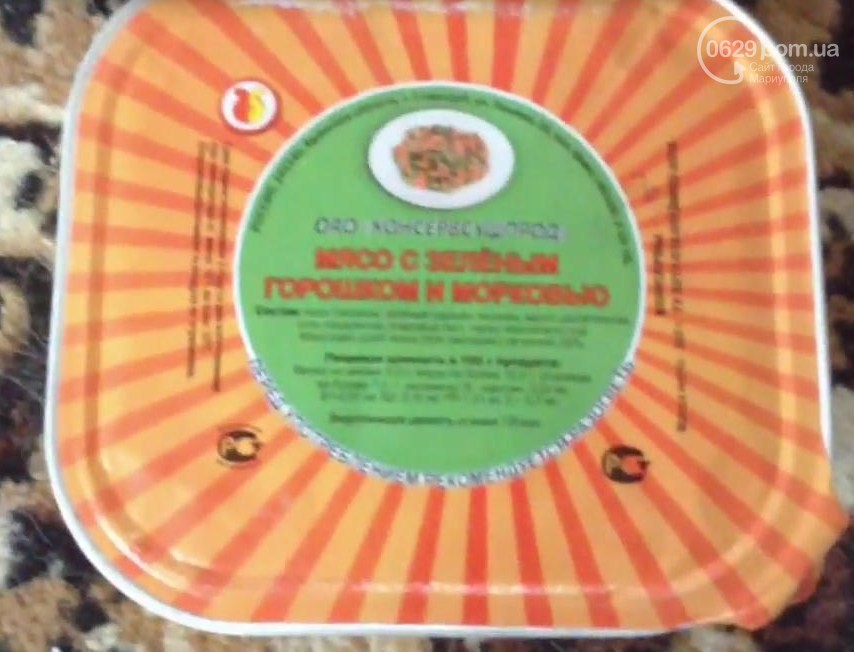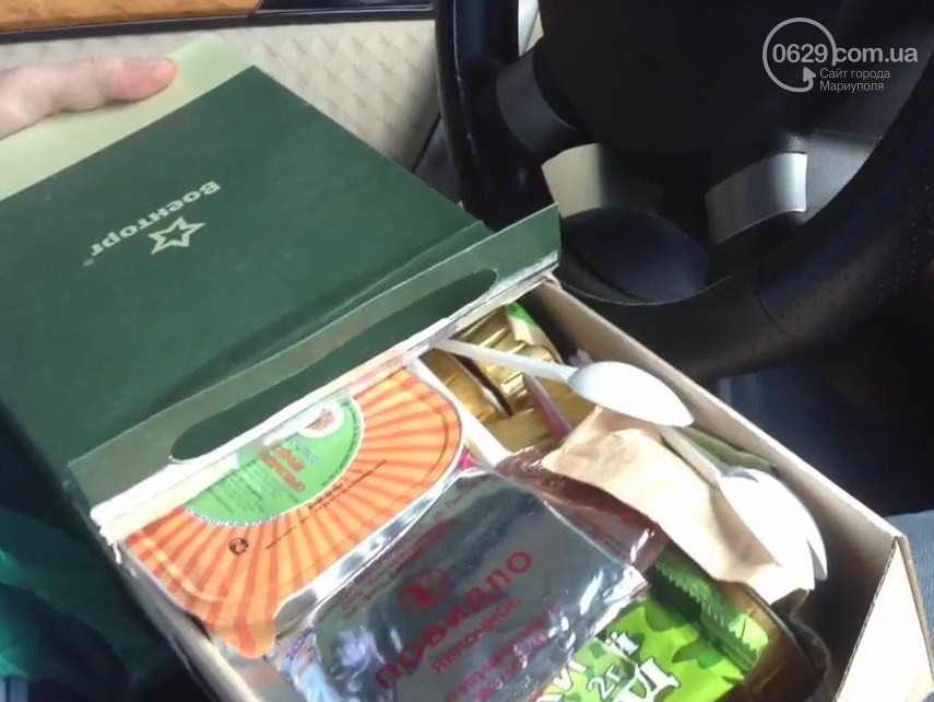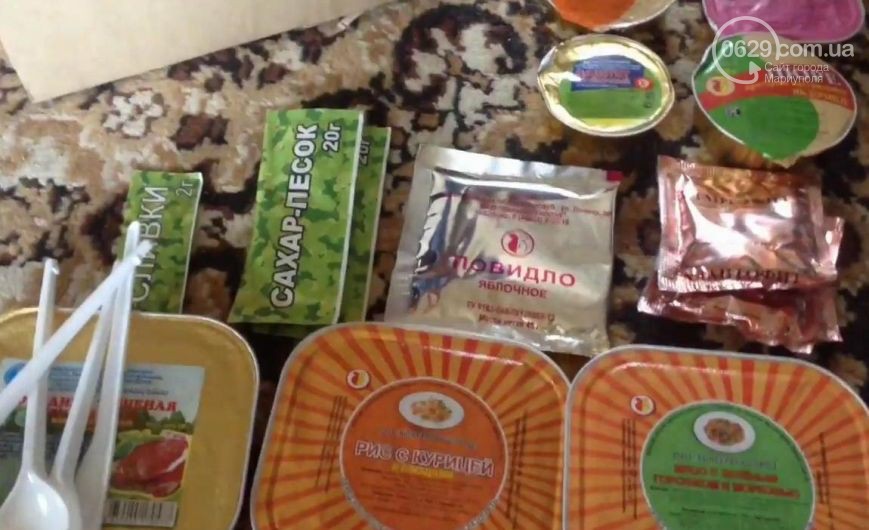 Во время посещения населенного пункта в руки жителей Мариуполя попал набор продуктов питания, изготовленный московской компанией «Военторг», который не предназначен для продажи.