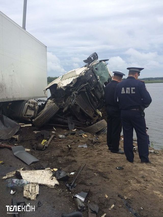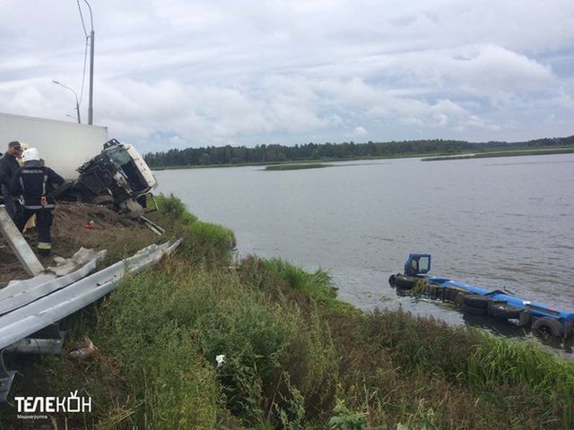 В результате столкновения бензовоз вылетел через ограждения и упал в Иваньковское водохранилище. По данным МЧС, в бензовозе находится 19 тонн дизельного топлива.