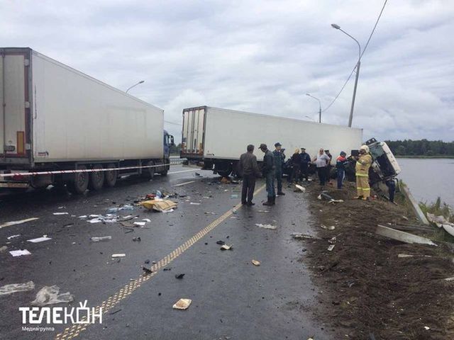 В Тверской области на трассе «Москва — Санкт-Петербург» произошло крупное ДТП с участием бензовоза, в результате которого погибли два человека, а бензовоз рухнул в водохранилище.