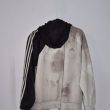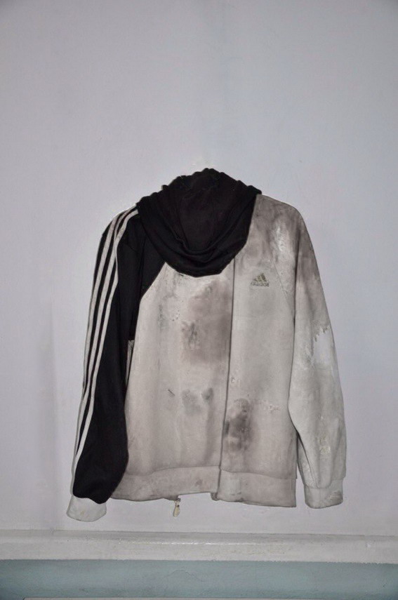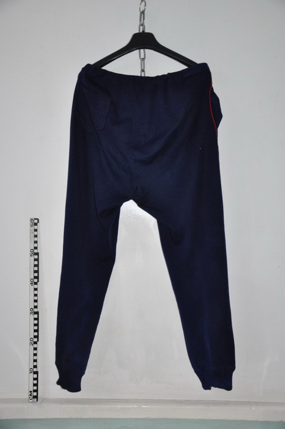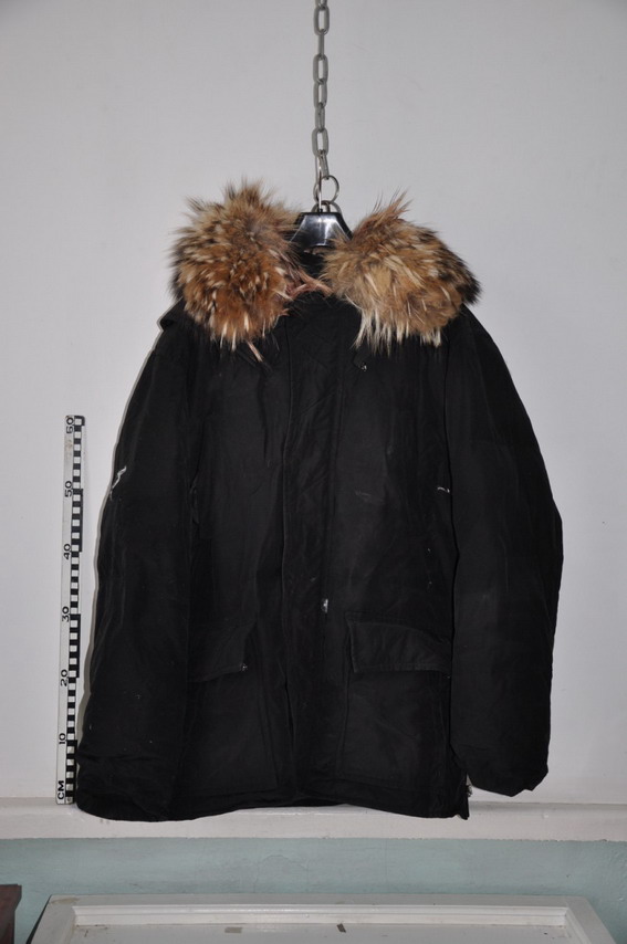 Мужчине на вид 40-45 лет, был одет в черную куртку с меховым воротником, черные ботинки, тельняшку (бело-синяя полоска), спортивную кофту белого цвета (рукав, воротник – черные, капюшон – черный с тремя белыми полосками) и двое спортивных штанов.