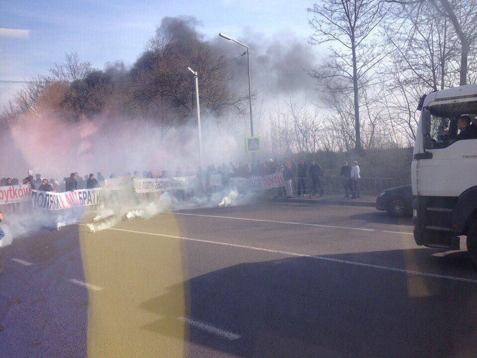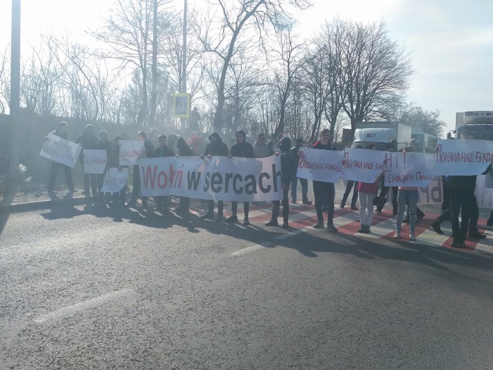 На опубликованном видно, что международную трассу перекрыли около 200 человек. В руках они держат плакаты на польском и украинском языках с лозунгами «поляки – наши братья» и другие. Также участники акции подожгли шины.