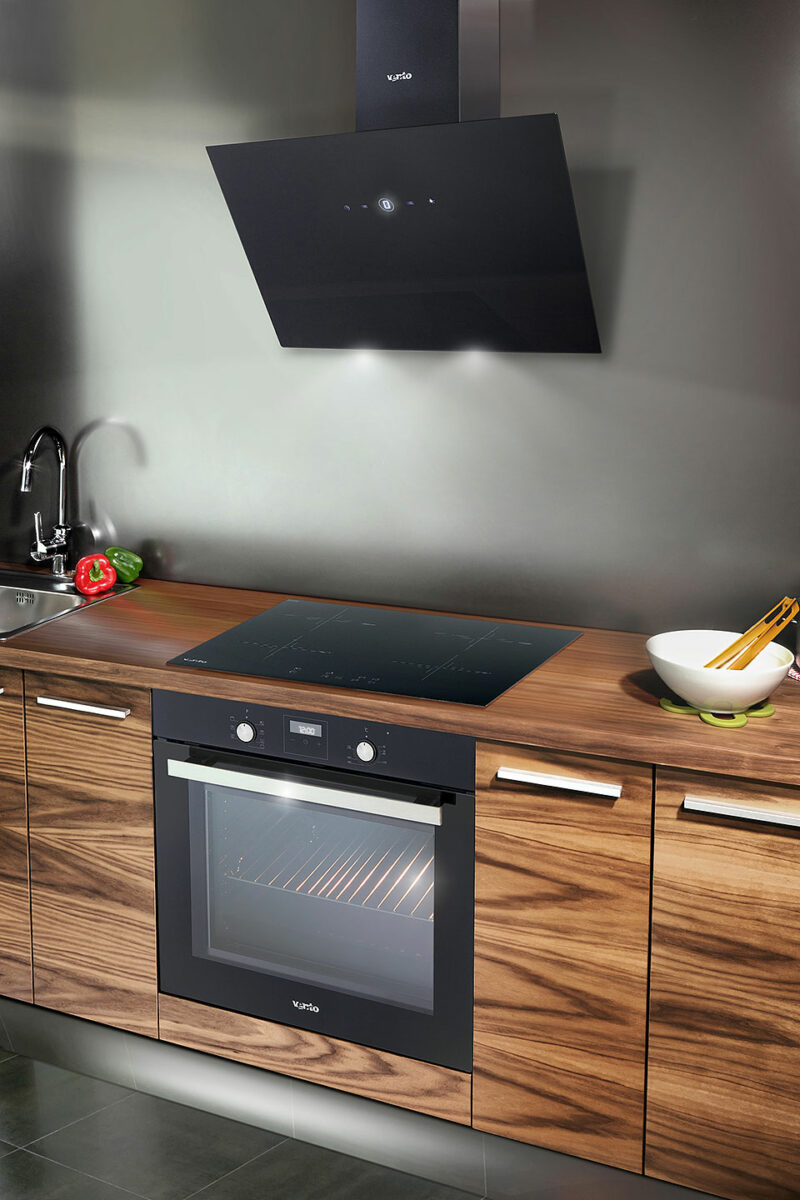 - создание принципиально новых наклонных вытяжек с рабочей панелью, расположенной под углом к плите,